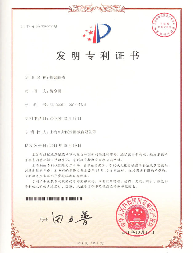 The electric wheelchair has obtained the European CE product certification and is a technology giant (cultivated) enterprise in Shanghai.